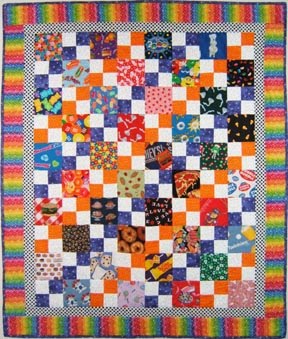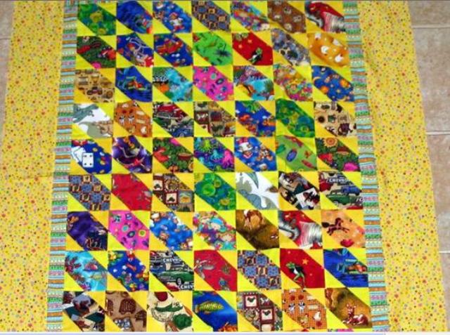 All the Happy Block quilts that we made for HeartStrings last year were a variation of an I spy quilt. I even made a twisted version. Both are on my MaryQuilts.com site.