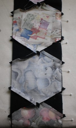 When you add your 2 triangles to each hexagon, be sure that you iron the triangles out so that you have little points sticking out each side of the two triangles.